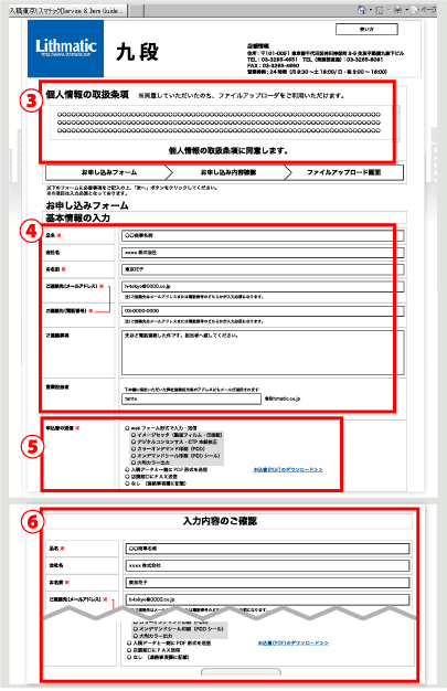 イメージセッタ、PODや大判カラーなどのシンプルなお申込内容をフォームにて入力できます。webフォームの入力例(PODスタンダード)