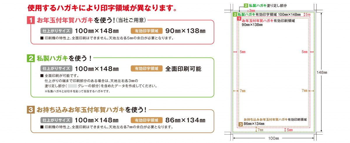 使用するハガキによって、印字領域が異なるためご注意下さい。